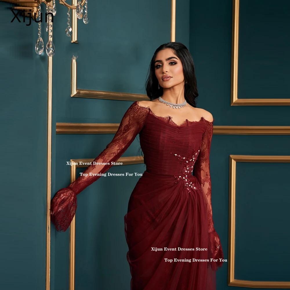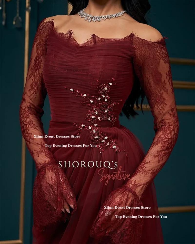 فساتين سهرة بحورية البحر من الدانتيل باللون العنابي