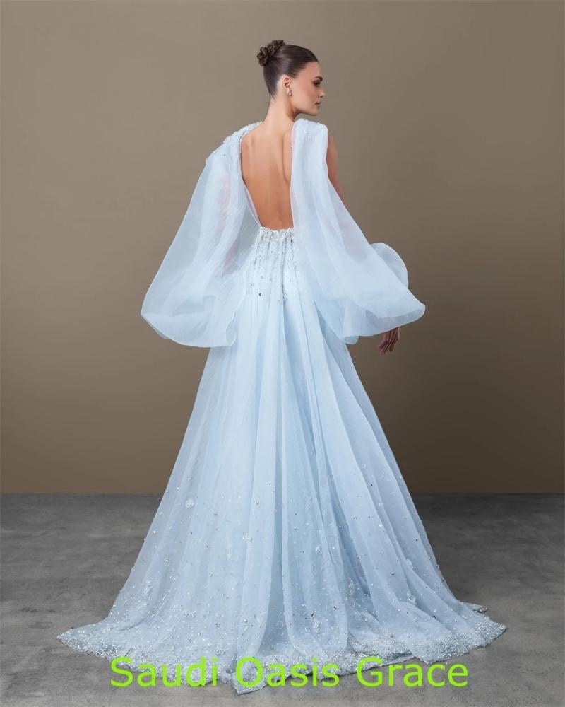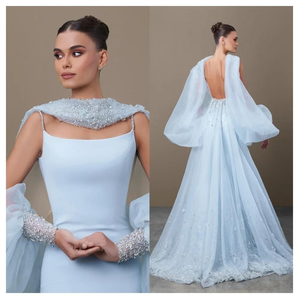 • تصميم فستان انيق طويل ظهر مكشوف يضفي لمسة جريئة وأنيقة تناسب السهرات المميزة
