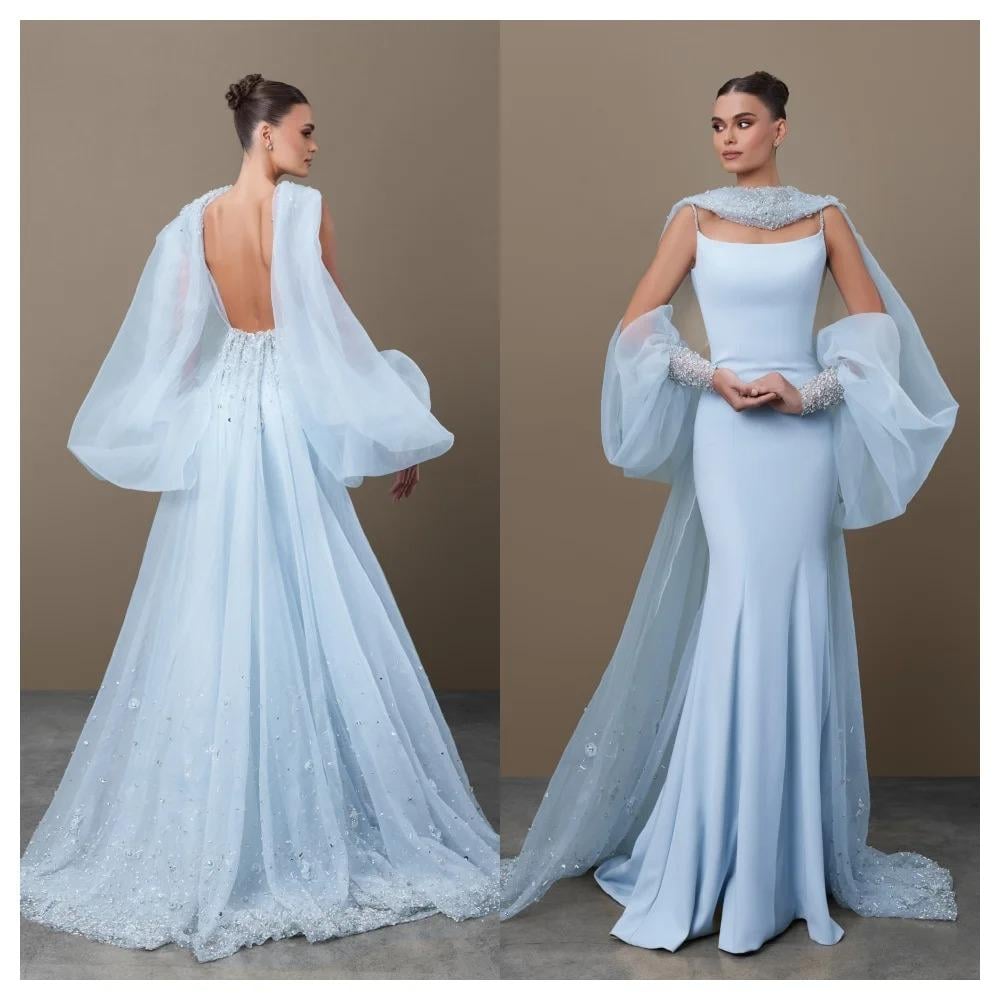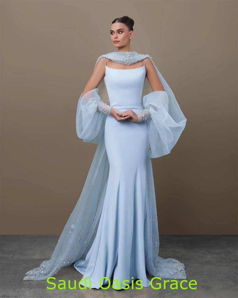 اطلبي فستان انيق طويل أزرق جيرسي تصميم حورية البحر الآن من متجر hh2line وتمتعي بإطلالة أنثوية جذابة ومميزة