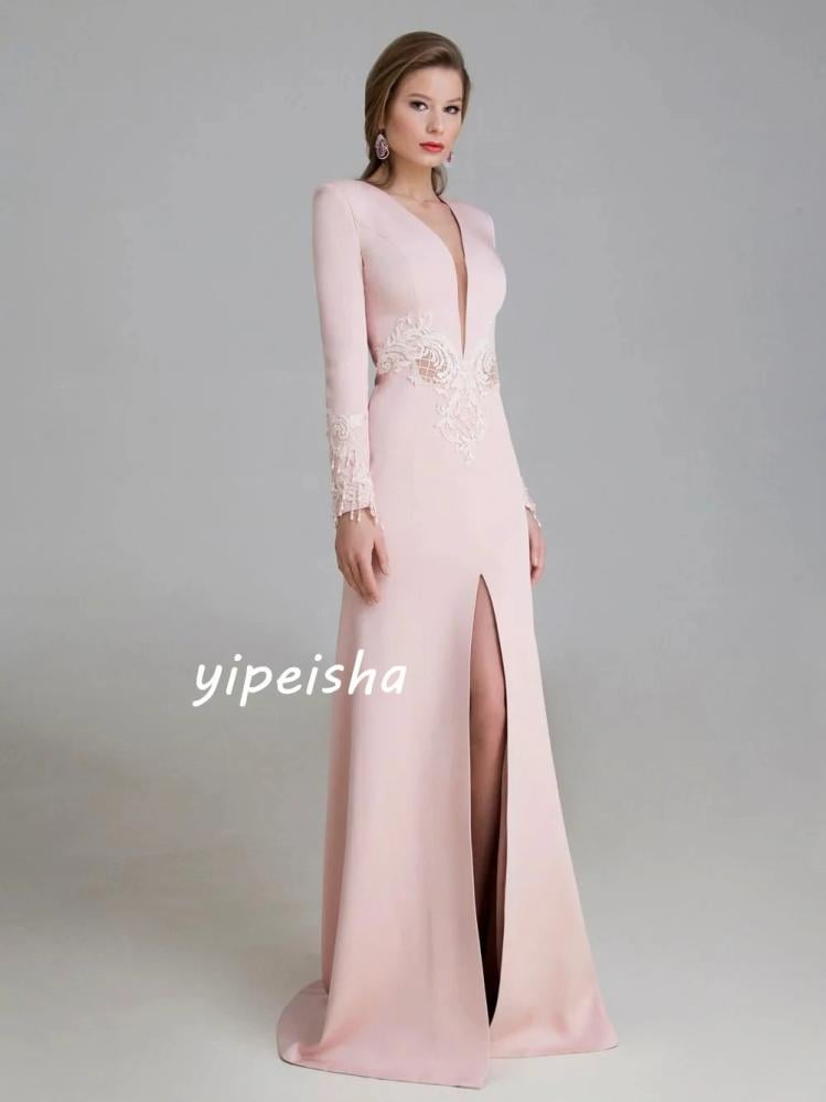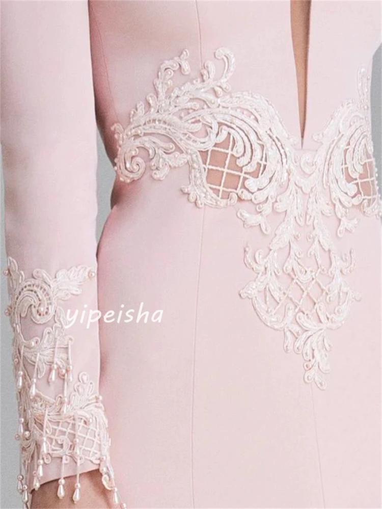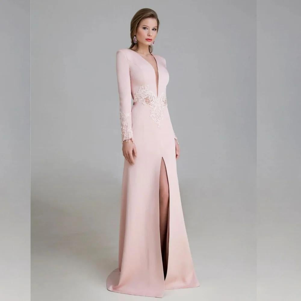 فستان جيرسي طويل أنيق من قماش الجيرسي بأكمام طويلة بلون وردي ناعم ، يجمع بين الراحة والفخامة في تصميم واحد . يناسب السهرات والمناسبات الخاصة ، حيث يمنح إطلالة متألقة أنثوية مع لمسة عصرية تناسب جميع الأوقات