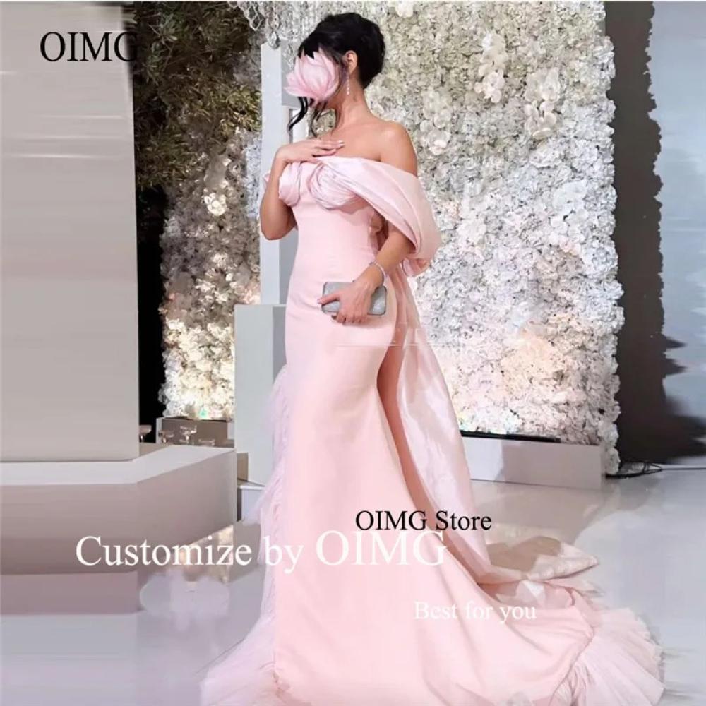 فستان سهرات طويل من OIMG باللون الوردي تصميم فاخر وأنيق بخامات تول وشيفون ، بقصة حورية البحر وكتف واحد مكشوف ، مثالي للمناسبات الرسمية والسهرات ، تجمع بين الرقي والأنوثة في كل تفاصيلها