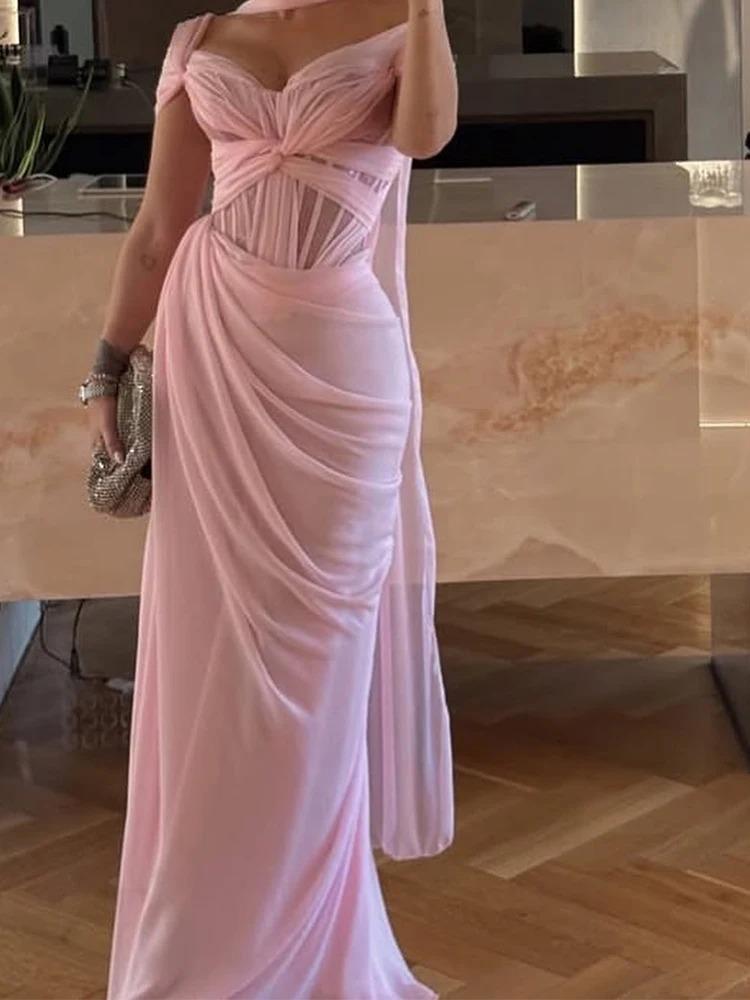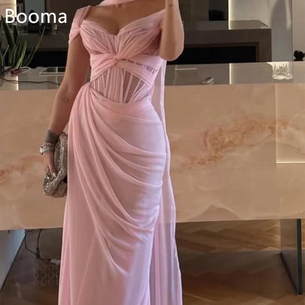 فستان سهرة بدون اكمام وقبالة الكتف باللون الوردي ، يجمع بين الأناقة والأنوثة بتصميم عصري وراقي . يناسب السهرات والمناسبات الخاصة ، حيث يضفي لمسة من الرقي والنعومة مع تفاصيل الطي التي تضيف حركة وجاذبية للفستان