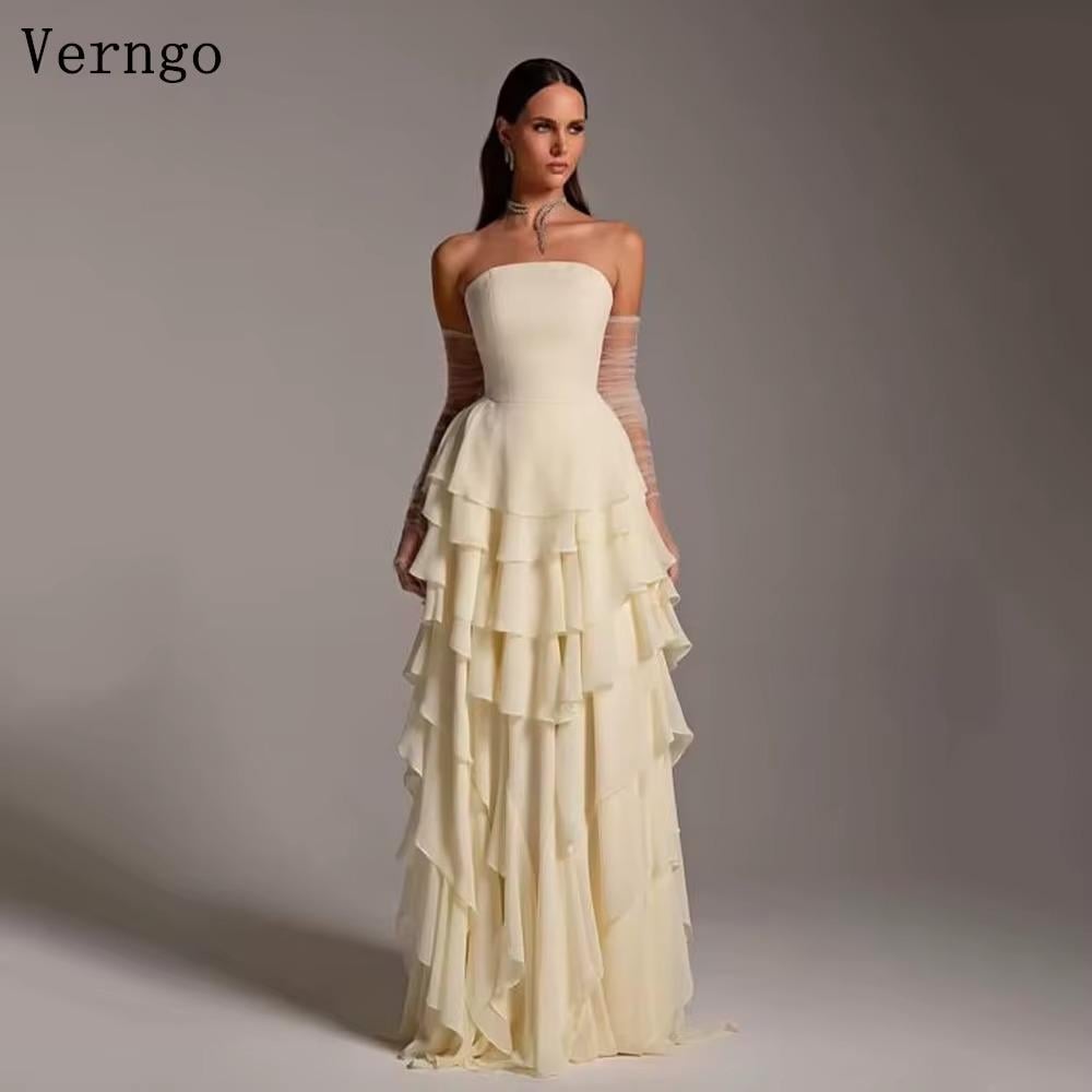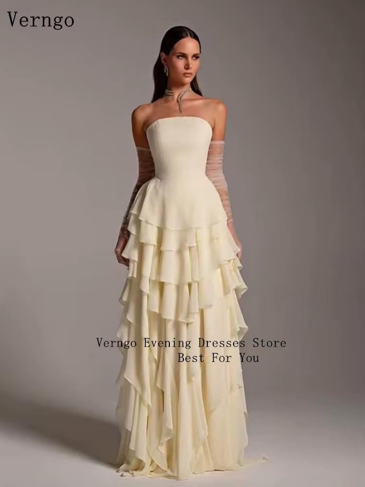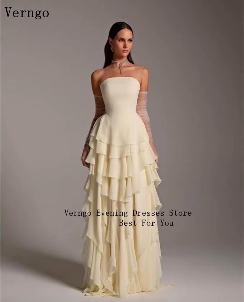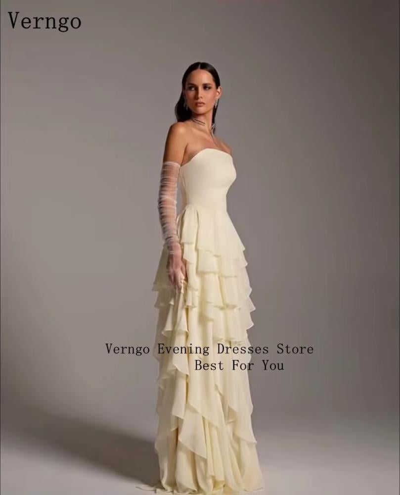 - اسم المنتج: فستان سهرة شيفون خفيف من Verngo بدون حمالات لون أصفر فاتح