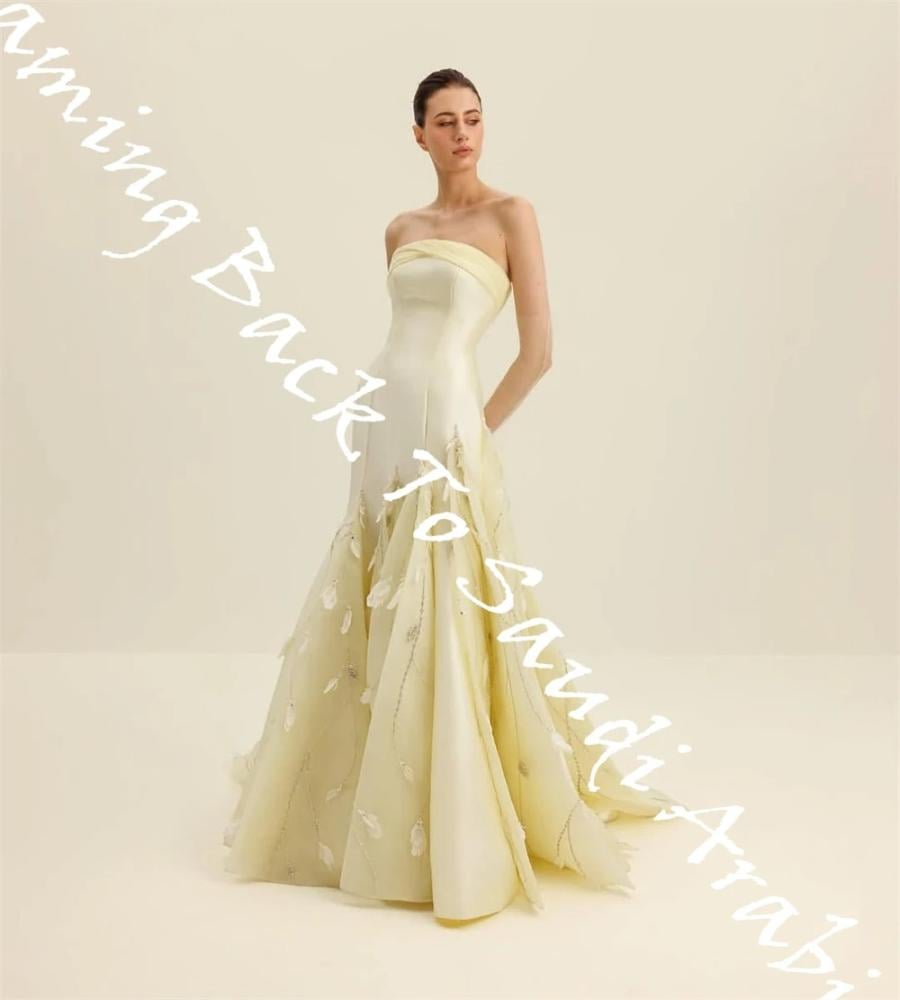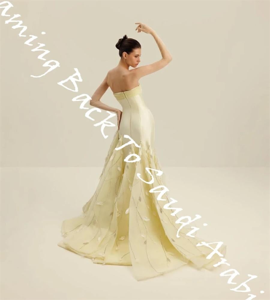 فستان سهرة من الساتان الأصفر رشيق مخصص