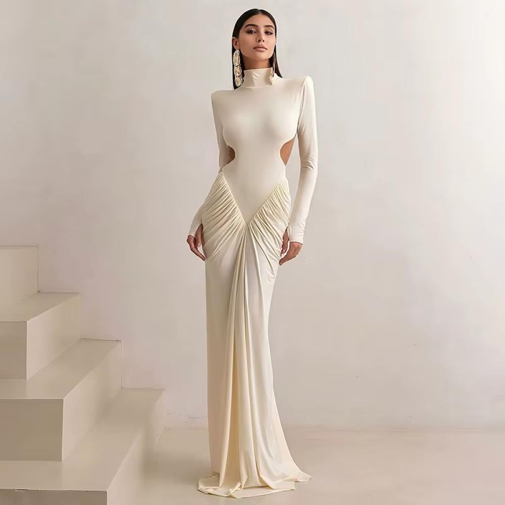 - اسم المنتج: فستان ماكسي خريفي بدون ظهر ماسك أوف وايت أكمام طويلة